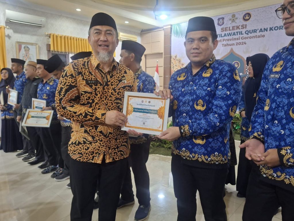 Kabar gembira datang dari fakultas Ushuluddin dan Dakwah, IAIN Sultan Amai Gorontalo. Muhammad Rifian Panigoro, S. Ud., M.A. yang menjabat sebagai ketua jurusan Ilmu Hadis, berhasil meraih prestasi hebat, dengan meraih juara 1 pada kegiatan Musabaqah Tilawatil Qur’an (MTQ) yang diselenggarakan oleh Korps Pegawai Republik Indonesia (KORPRI) tingkat provinsi Gorontalo. Tak hanya itu, berkat kemenangan ini, Muhammad Rifian Panigoro, M.A, juga berhasil melaju ke tingkat Nasional yang digelar di Kota Palangkaraya, Kalimantan Tengah, yang pelaksanaannya dimulai sejak tanggal 3-10 November 2024.