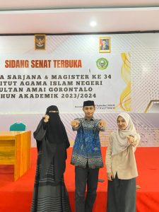 Mahasiswa Jurusan Ilmu Hadis kembali menunjukkan kualitas akademiknya melalui prestasi di tingkat kampus. Tim Fahmil Qur’an yang terdiri dari Nassar Said Subetan, Ananda Saliko, dan Marsya Ayu A. Sunandar berhasil meraih Juara I dalam Lomba Fahmil Qur’an pada ajang PORSI (Pekan Olahraga, Riset, dan Seni) yang diselenggarakan oleh DEMA IAIN Sultan Amai Gorontalo pada 5 Januari 2026. Sejak babak penyisihan, tim ini tampil konsisten dengan perolehan poin yang unggul, menjaga performa hingga babak final dan memastikan berhasil meraih posisi juara pertama.